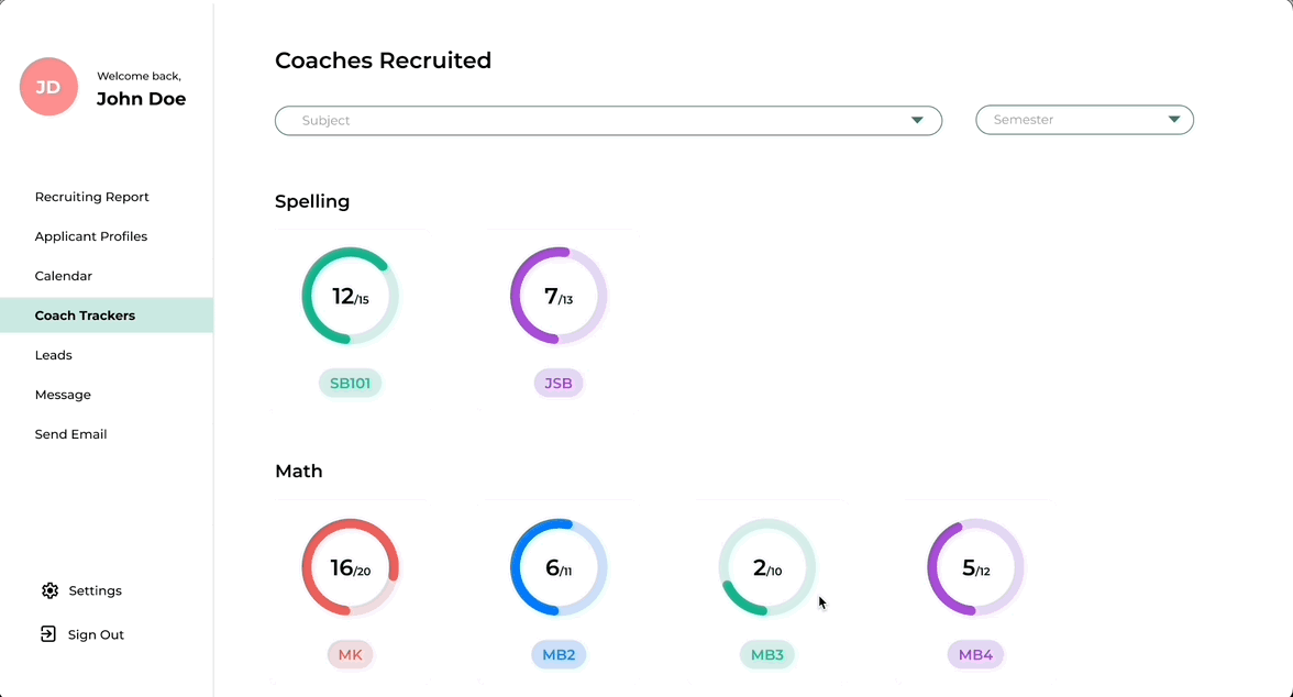2. Tracking and Filtering: Recruiters can easily track the number of coaches hired for each subject, eliminating the need to rely on others for updates.