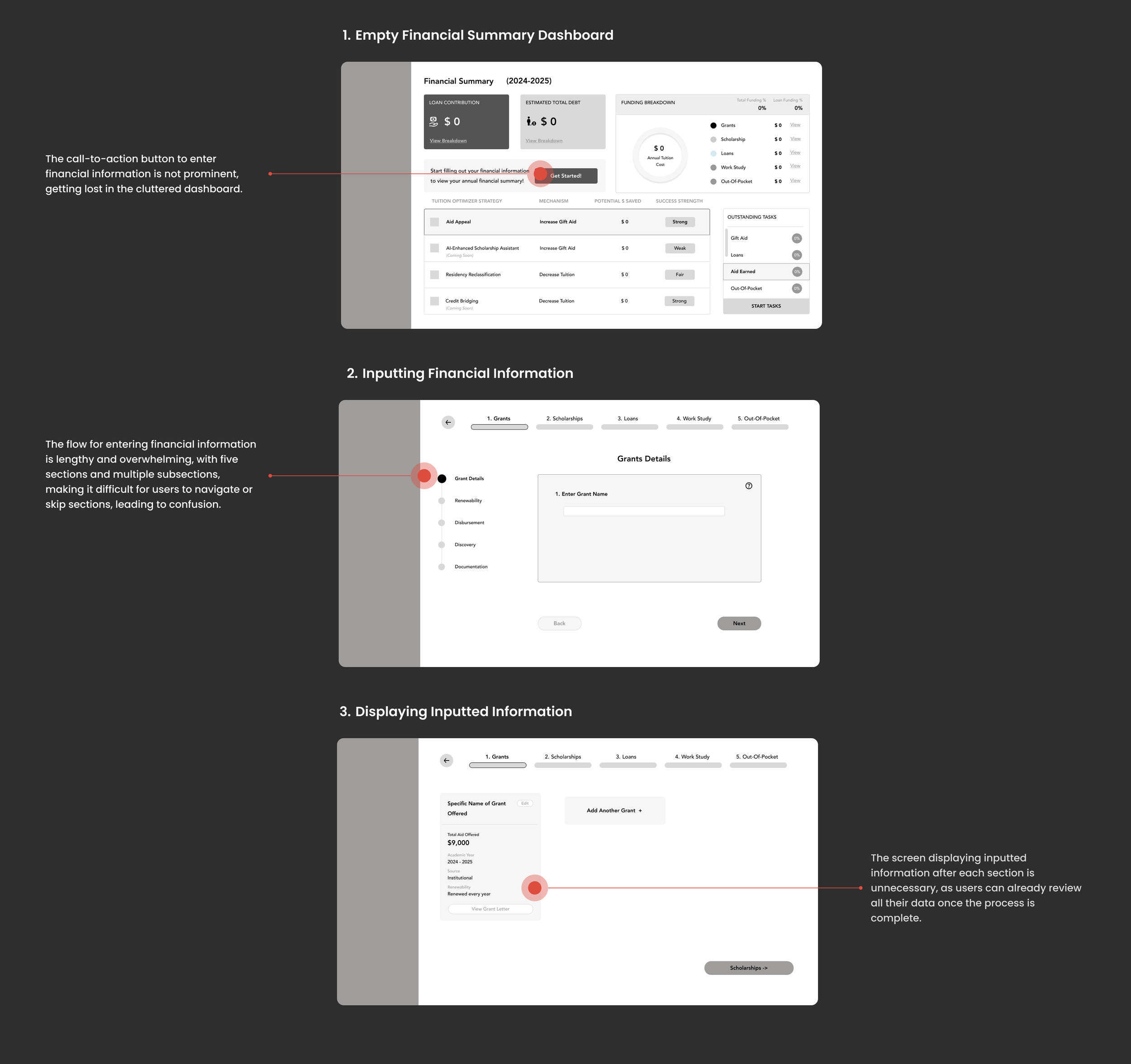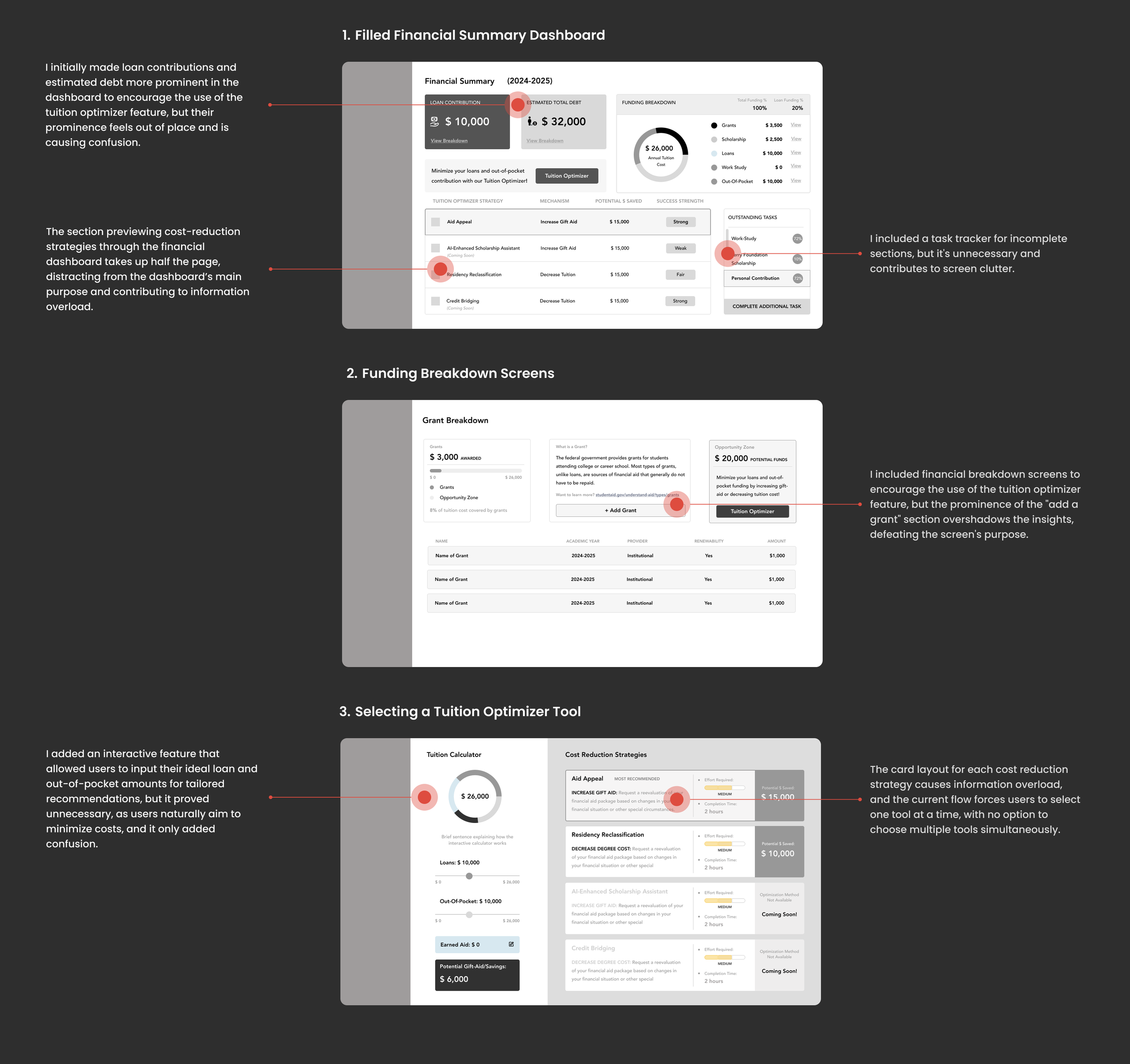Insights from our first iteration revealed key challenges that must be addressed to streamline tuition management and support proactive financial planning.